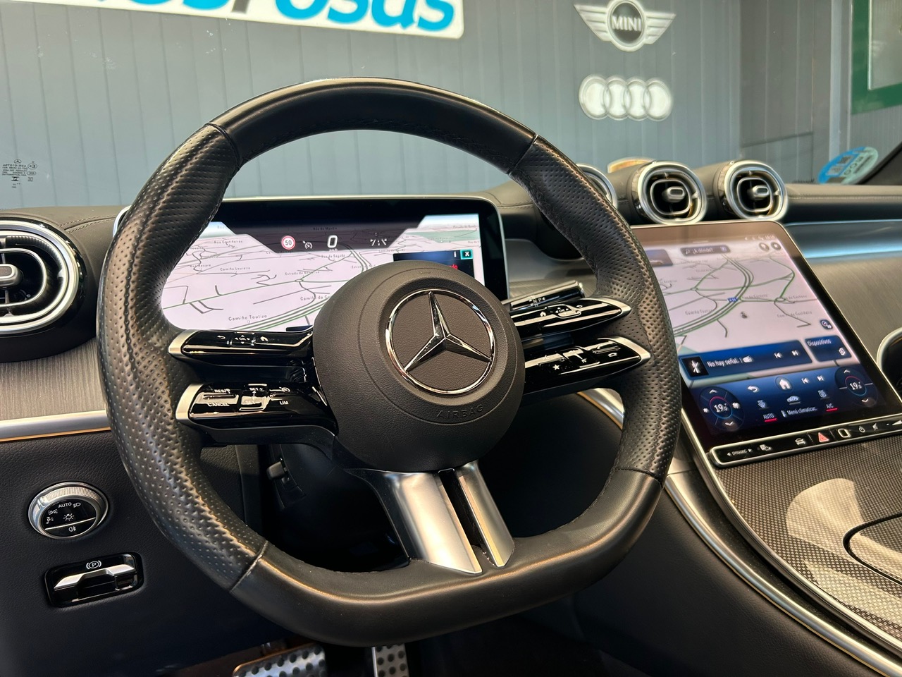 Volante deportivo multifunción forrado en cuero napa